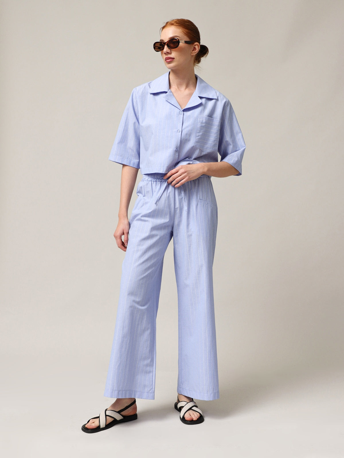 Zusammensetzung: 53% Baumwolle, 45% Polyester, 1% Polyamid, 1% Lurex.