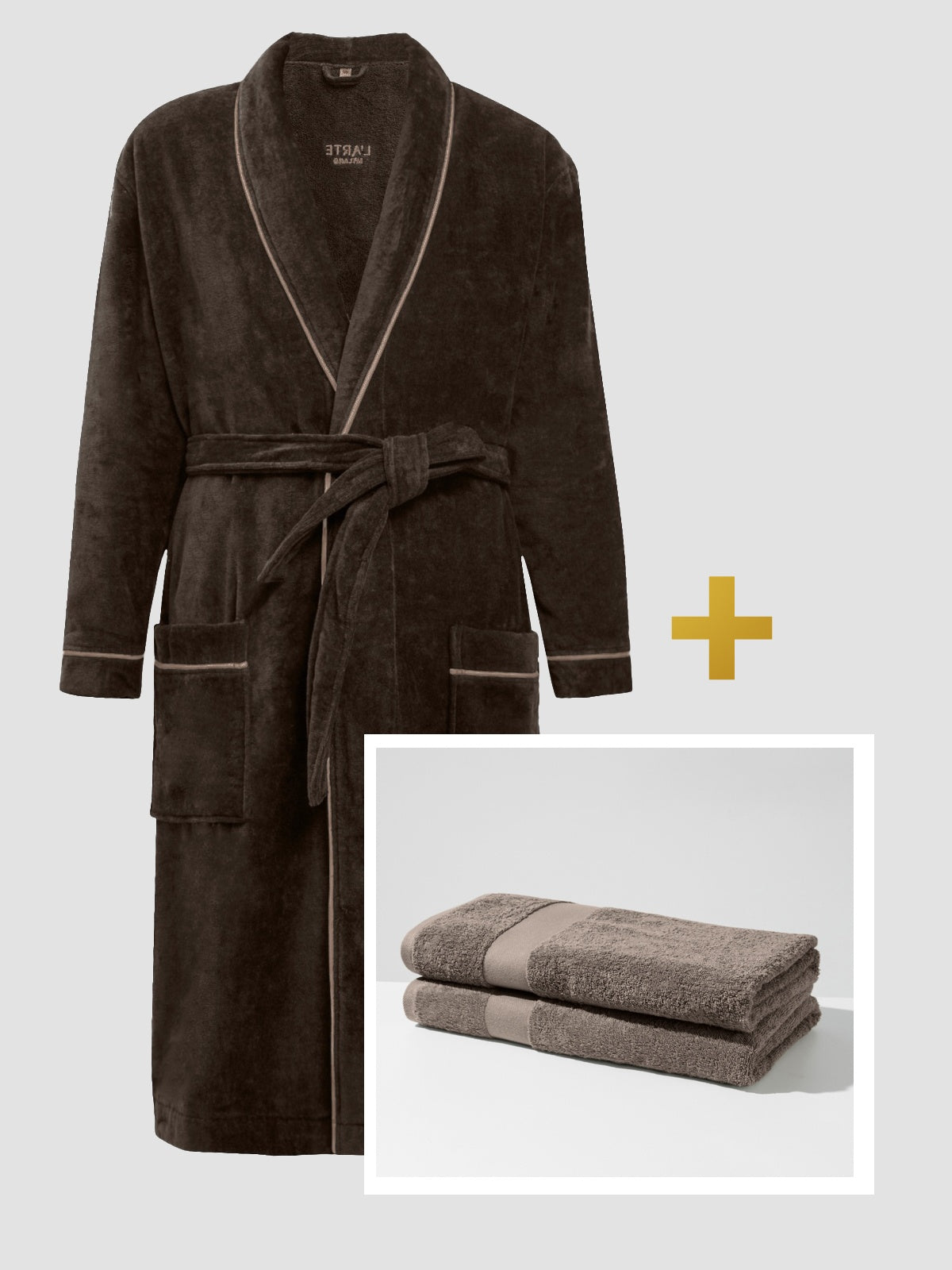 Rinkinys: chalatas ir medvilnės rankšluosčių rinkinys – (2 vnt, 50 x 90 cm)