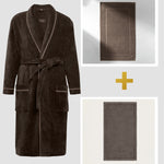 Rinkinys: chalatas, vonios kilimelis, 50x85 cm ir didelis veliūrinis rankšluostis – 90 x 170 cm